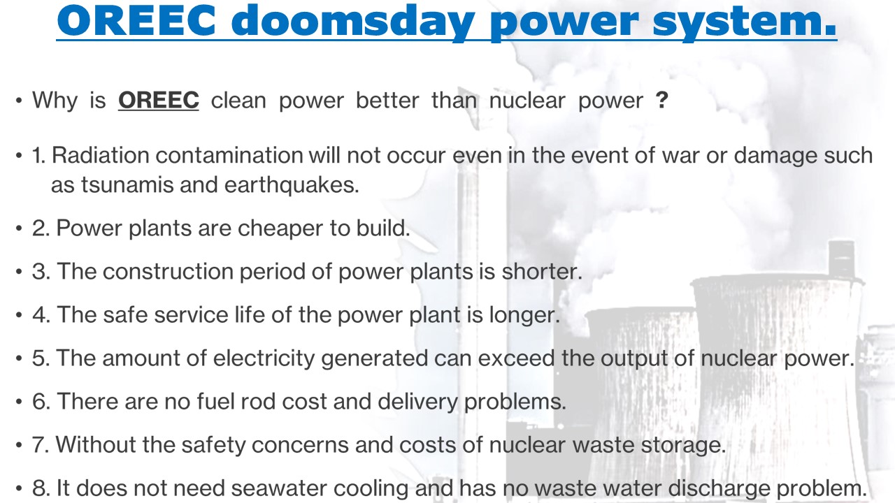 OREEC involves national security. OREEC doomsday power system. in extreme climates, stable and clean electricity is provided.